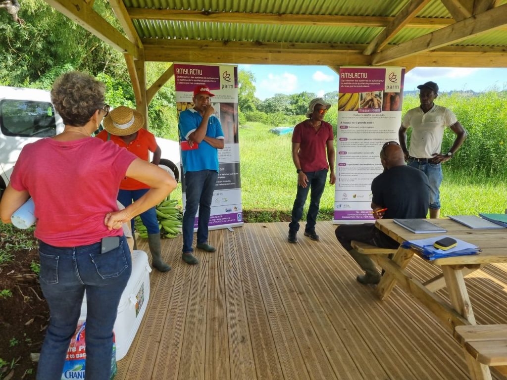 Des journées de clôture du projet ont été organisées en bord de champs les 28 septembre et 24 octobre 2023, sur les parcelles d’exploitation de la Chambre d’Agriculture de Martinique à Chopotte et du CIRAD à Rivière Lézarde. Ces journées ont permis de diffuser les résultats du projet AMYLACTIV aux partenaires, techniciens agricoles, agriculteurs et lycéens de filière agricole de Martinique.