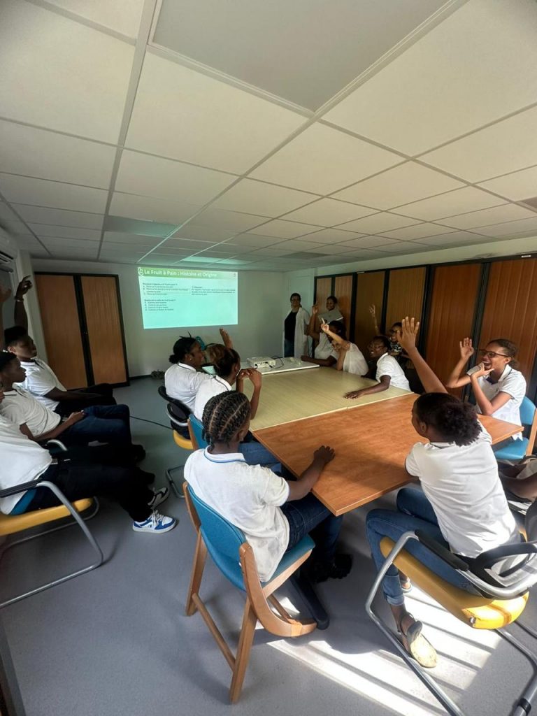 Le jeudi 16 octobre 2025, le PARM a poursuivi les célébrations en accueillant des élèves du Collège Edouard GLISSANT et 2 classe de CM1 l’école Zobda QUITMAN pour une animation intitulée : “Les explorateurs du goût à la découverte du fruit à pain“.